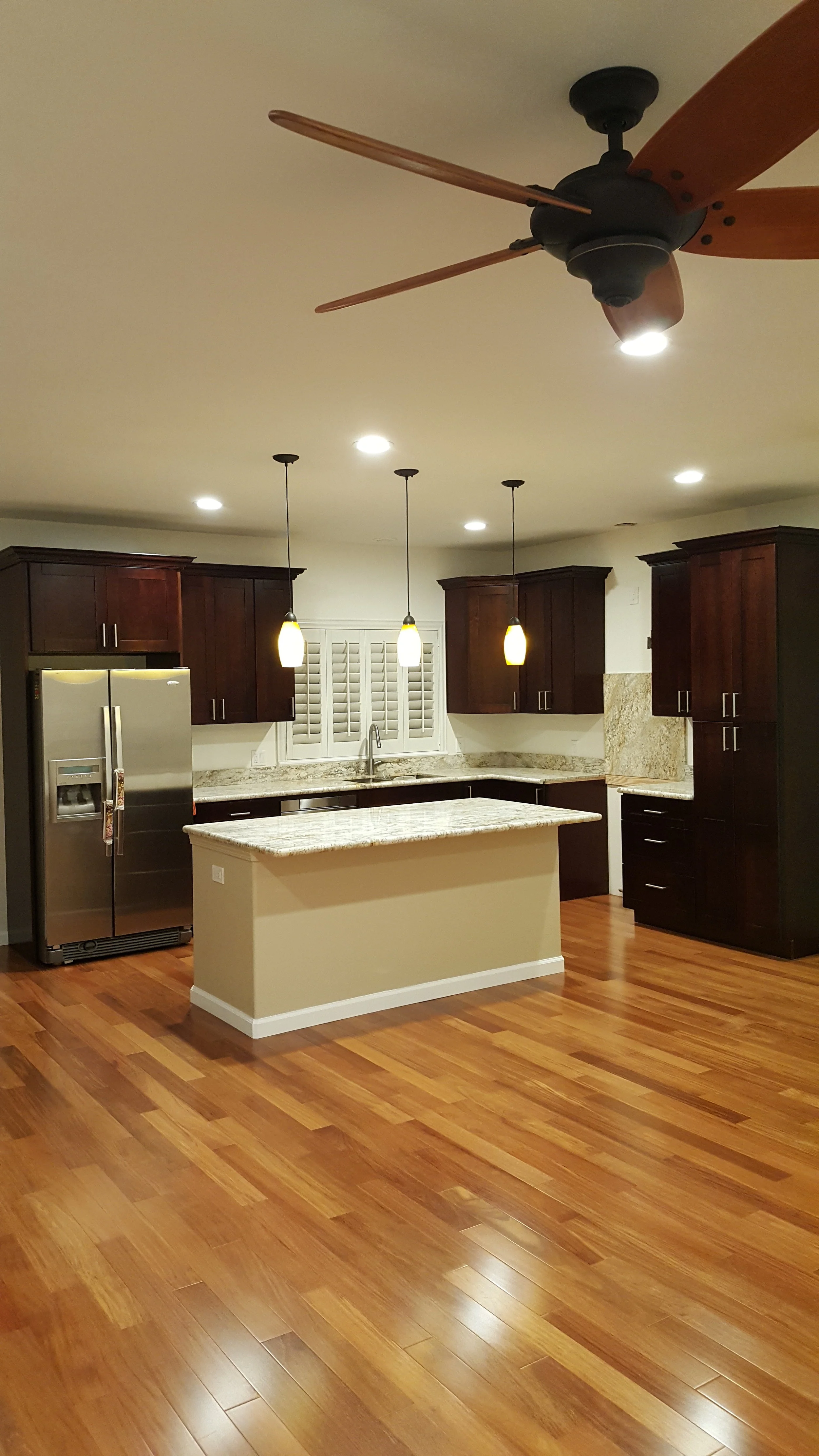 Here are some photos of renovations and remodeling. We use quality solid wood cabinets with plywood boxes and soft close drawers and doors. Granite and quartz countertops are installed on solid wood cabinets. Hardwood flooring, stone showers and porcelain floors designed to flow seemlessly with the granite countertops and solid wood cabinets. Designed and installed by a licensed and insured remodeling contractor. Whether you are remodeling a kitchen or a bathroom, hire a licensed and insured contractor. Appreciating Homes, Inc. is a licensed and insured contractor who will design your kitchen, bathroom or full renovation on Oahu to suit your needs and dreams. Whether you're remodeling your home in Mililani, Hawaii Kai, Aina Haina, Kapolei, Waikiki, Honolulu, or Pearl City, call us today for a free quote for your renovation project.